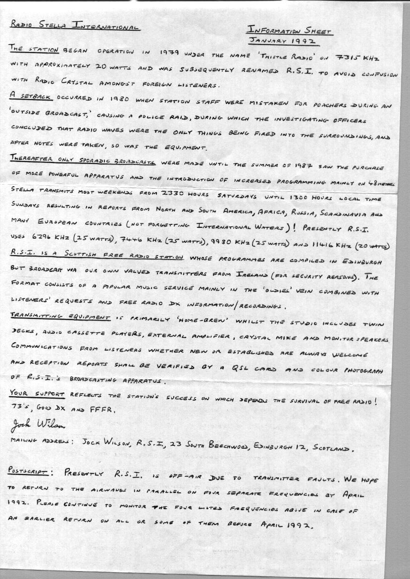 Stella Newsletter January 1992. Originally written by Jock Wilson.