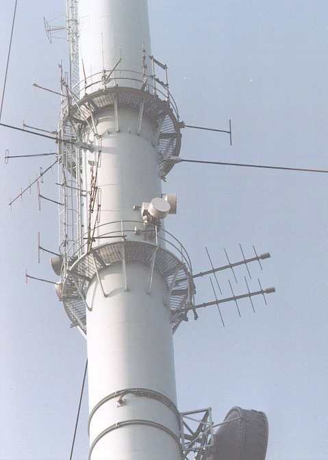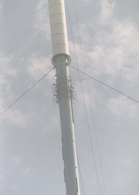 A view of the mixed polarisation FM radio antennas carrying BBC National FM radio