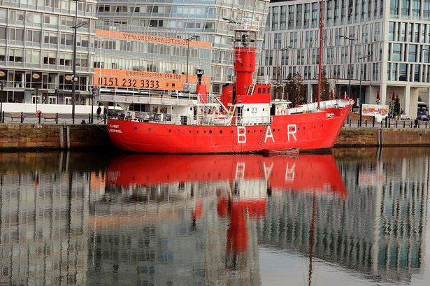 The Mersey Bar Lightship,berthed at Canning Dock, on the Strand, who plan to celebrate the 50th Anniversary of Radio Caroline with a months broadcast.