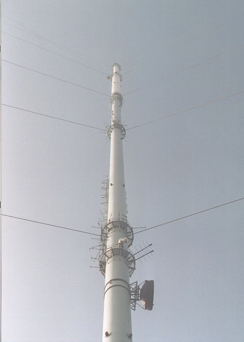 Another view showing the warning lights which are used to warn of falling ice during winter